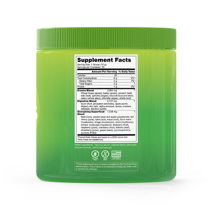 Superfood power in every scoop. Glow Greens is your delicious daily boost of nutrient-dense greens, energizing superfoods, and gut-loving digestive support, all in a refreshing formula with only 35 calories per serving.